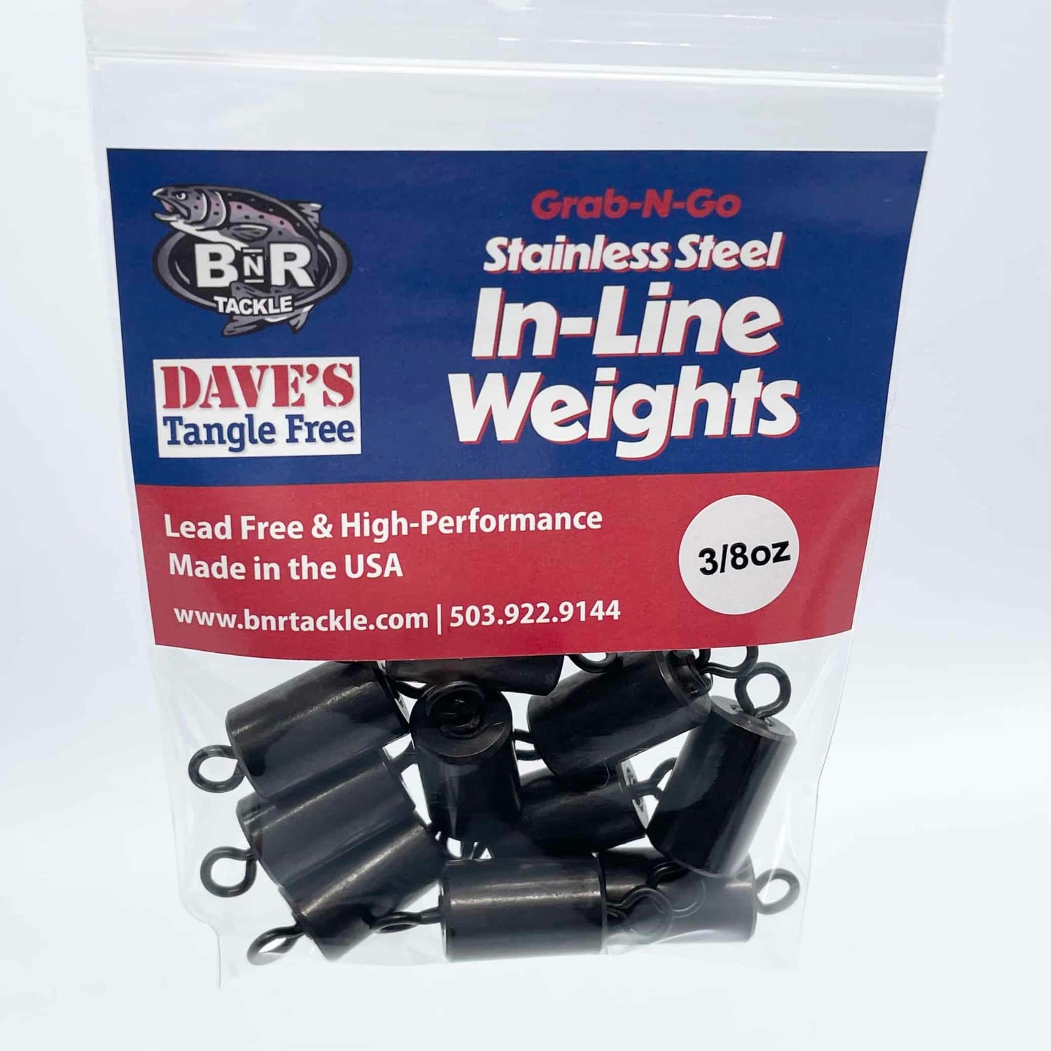 With the success of the original design, Dave's Tangle Free has engineered another new design — built to bring a new technical advantage to the lead-free sinker market. Dave's In-Line weights are lead-free with numerous advantages. These weights are made of uncoated stainless steel, with moving swivels on each end. This design provides a quick and easy float fishing solution, but with increased sensitivity and the energy of steel.